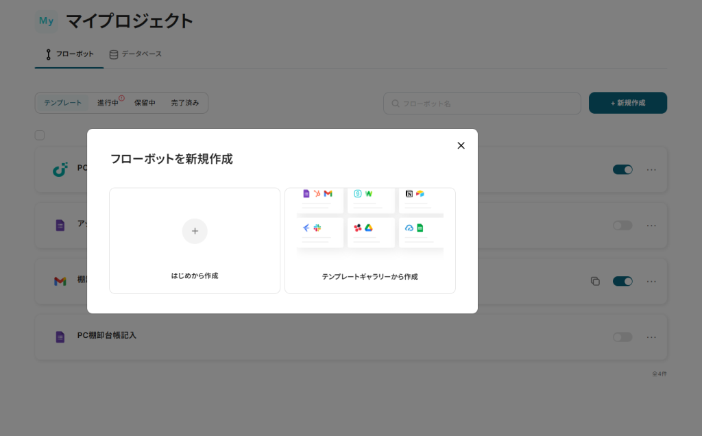 初めから作成とテンプレートギャラリーから作成の2つが選べます。今回は初めから作成を選択します。