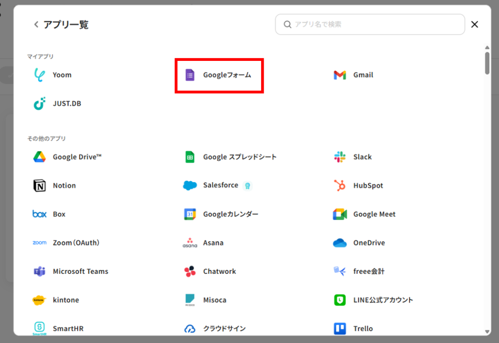 アプリ一覧が表示されます。今回はGoogleフォームを選択します。