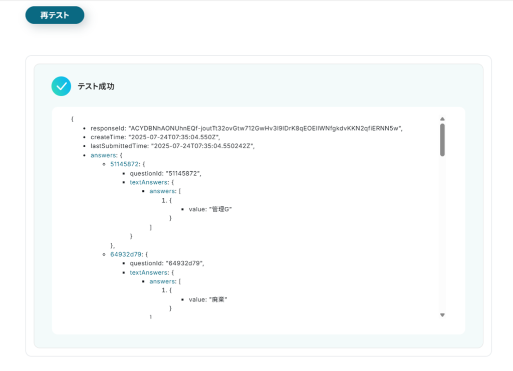 以上で、社員からの回答が自動的にJUST.DBへ反映される仕組みの構築は完了です。