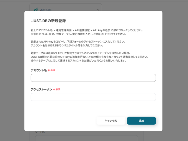 具体的には、アプリやSaaS、Webサービスと連携し、一連の業務を丸ごと自動化する「ハイパーオートメーション」を実現するYoomというツールを活用し、Googleフォームで回収したデータがJUST.DBに反映される仕組みです。