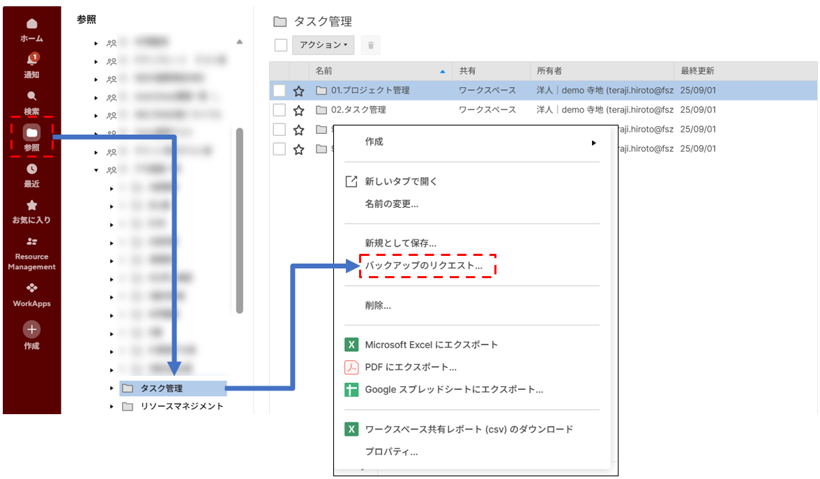 Smartsheetより直接バックアップをダウンロードも可能です。