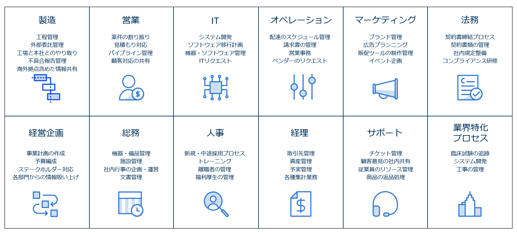 営業・人事・製造・設備管理など、さまざまなビジネス分野で活用できます。